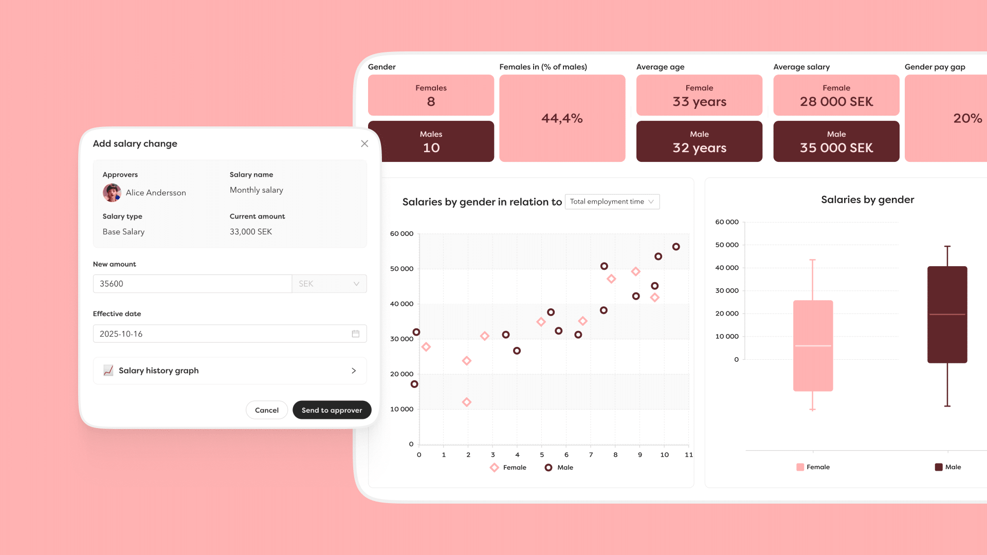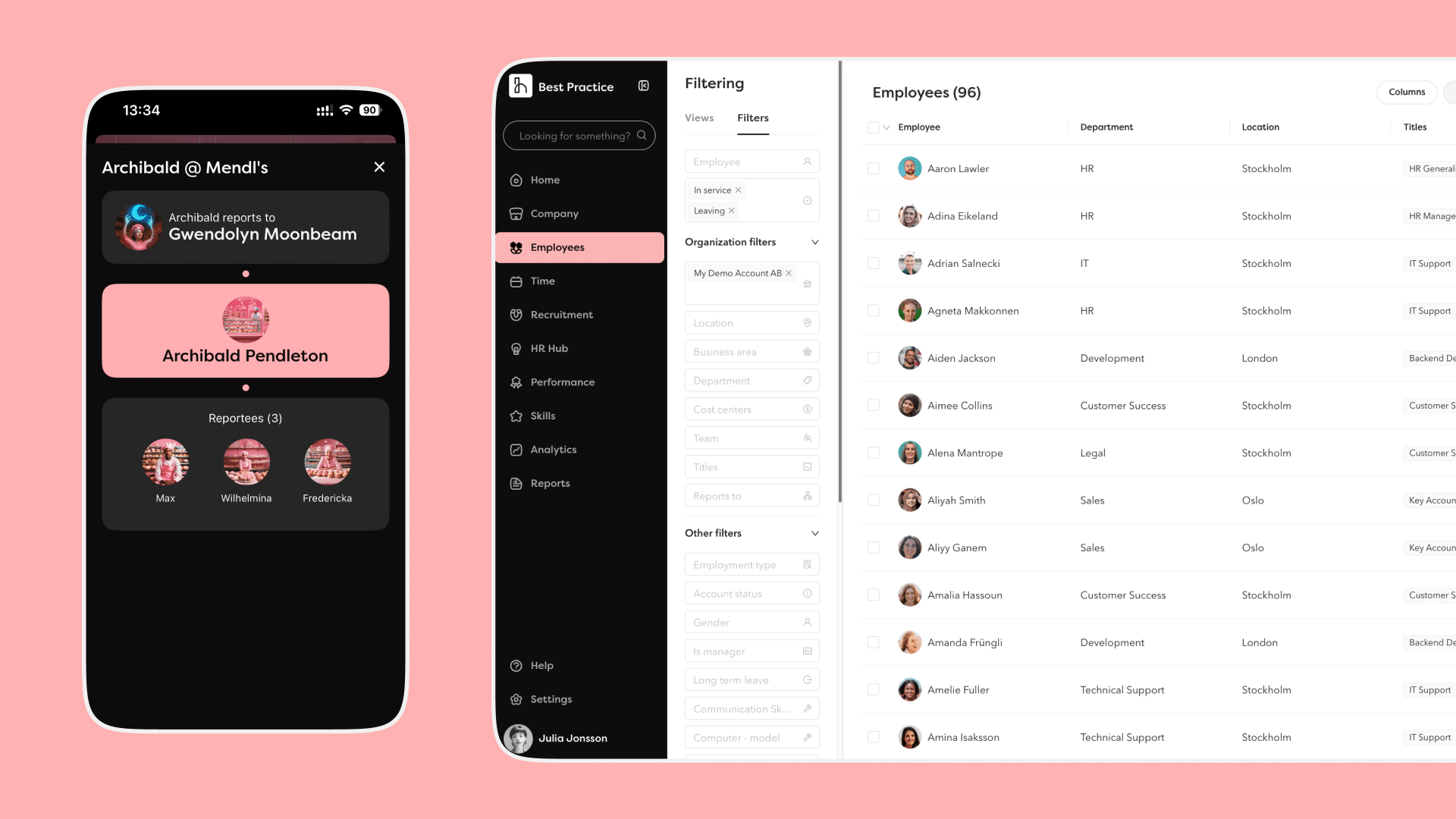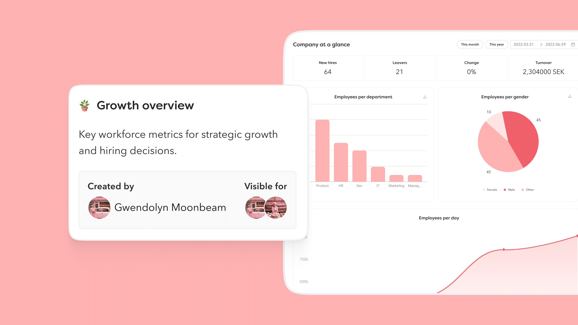 The price is based on the number of active employees in the system. You pay monthly in advance and there’s no notice period. We want it to be easy to understand what you get and what it costs - that's why we have one package where everything is included.